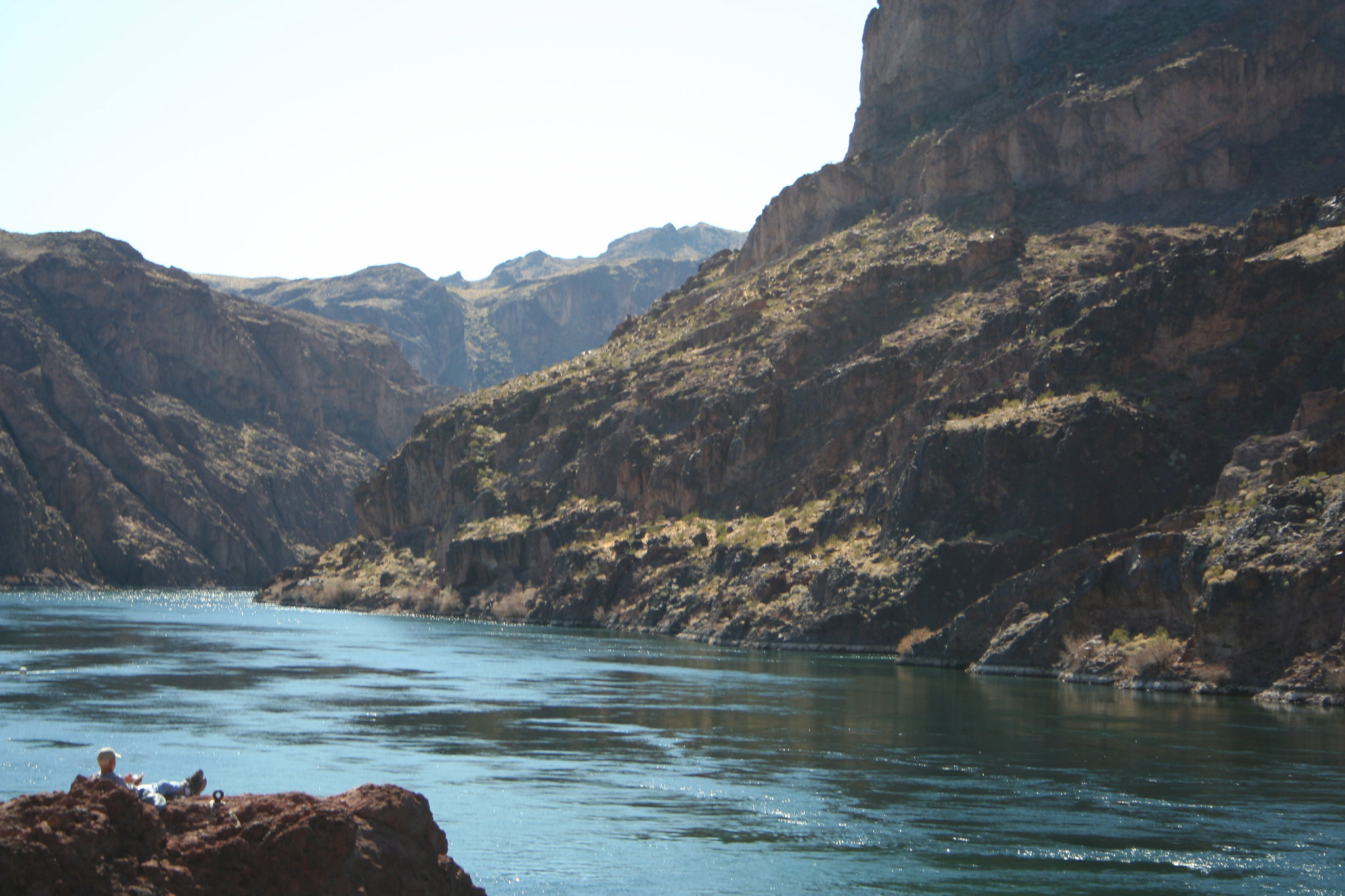 This thermal spring sits at 760 feet elevation along the Colorado River corridor, requiring a challenging hike of nearly two miles (approximately 9,900 feet) from Hoover Dam-Kingman Highway. The dramatic canyon walls frame the spring's setting where desert vegetation clings to steep slopes. The river corridor provides water and landscape contrast to surrounding aridity.