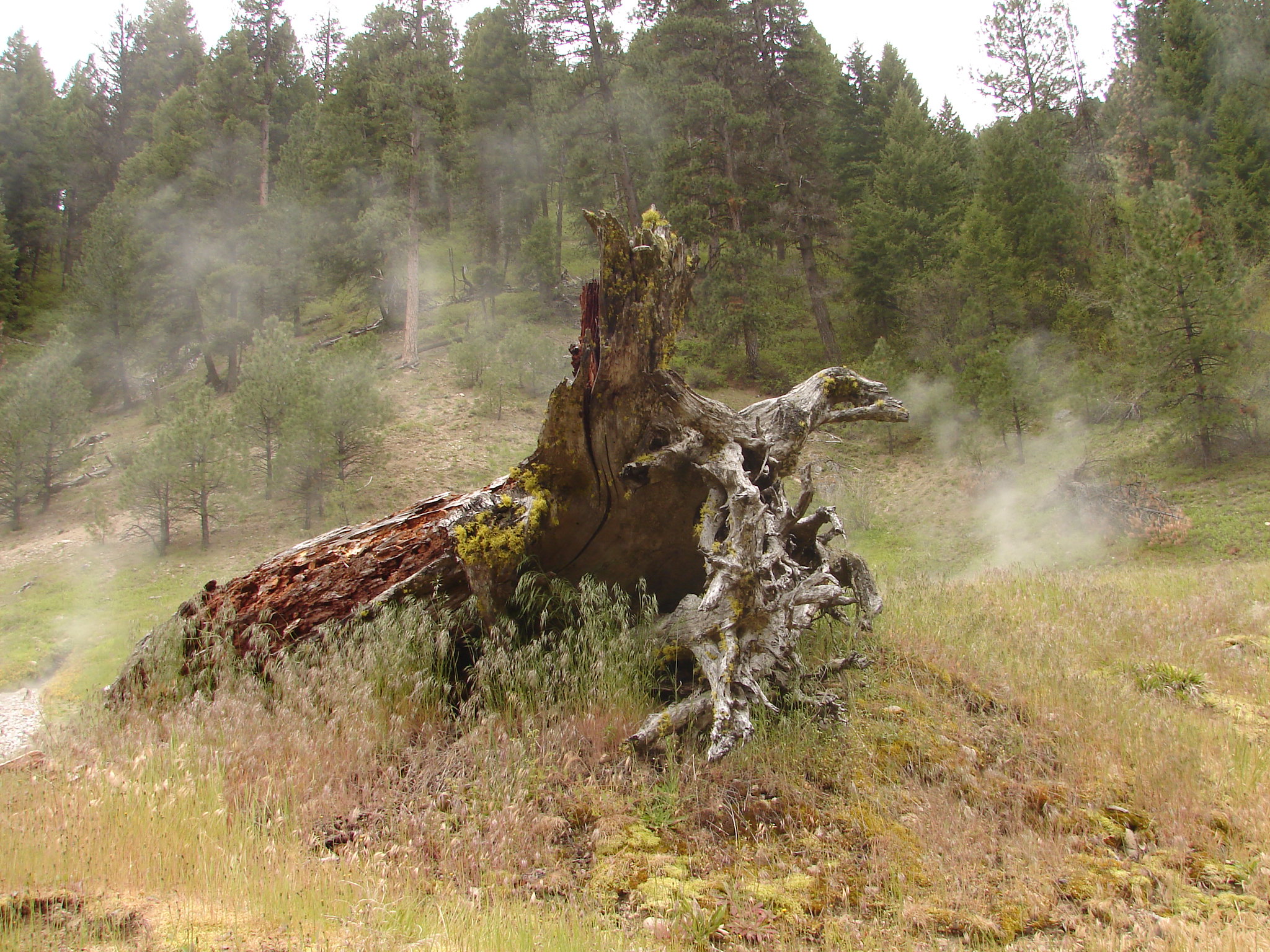 The spring emerges at 4,880 feet elevation on a forested slope above Warm Springs Creek in Boise County. The trail from Bonneville Campground climbs through mixed conifer forest, with the sound of the creek below. Annual snowfall exceeds 176 inches, burying the area in winter but feeding lush summer vegetation. The soaking pools are rock-and-log constructions where the superheated source water has cooled enough for bathing. Steam rises through the trees on cool mornings.