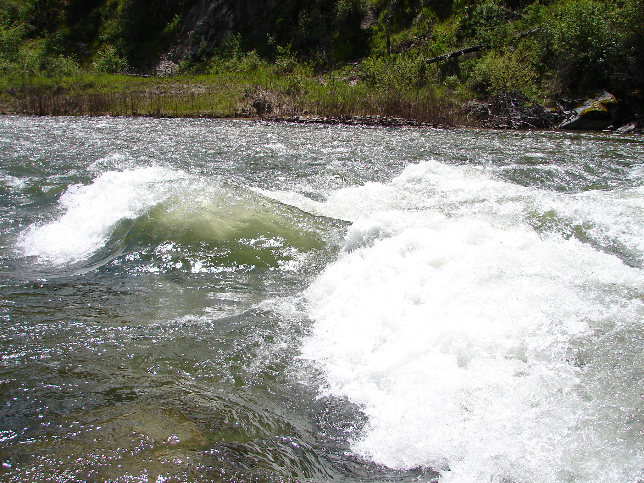 The South Fork Payette River dominates the scene here, running fast and cold through a forested canyon while thermal water seeps down the riverbank into rock-lined pools at the water's edge. Ponderosa pine and Douglas fir shade the canyon slopes, and the highway follows the river's curve through the drainage. Annual snowfall approaches 80 inches, but the relatively low elevation keeps winters milder than in the higher backcountry. Rafters and kayakers frequently pass through the rapids in view of the soaking pools.