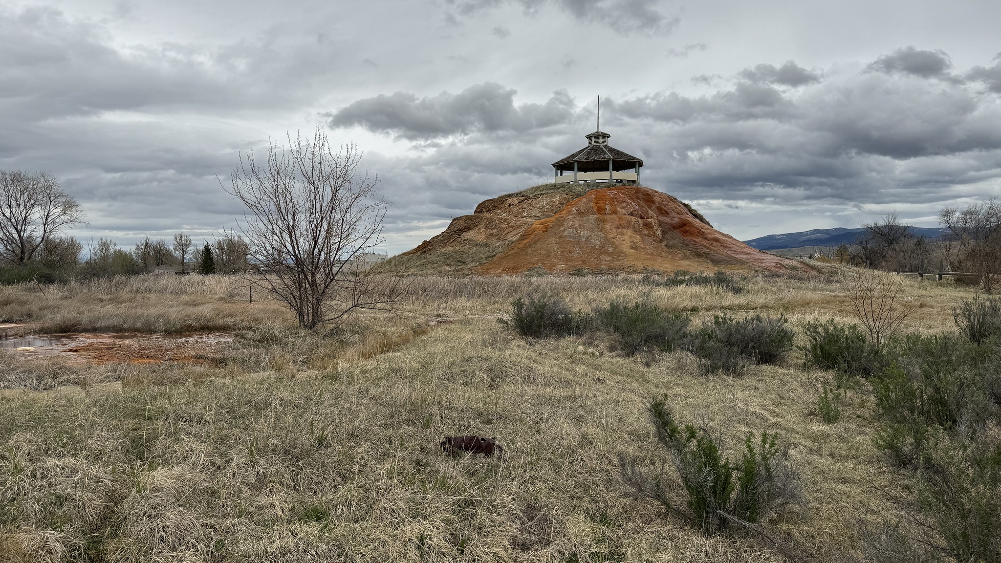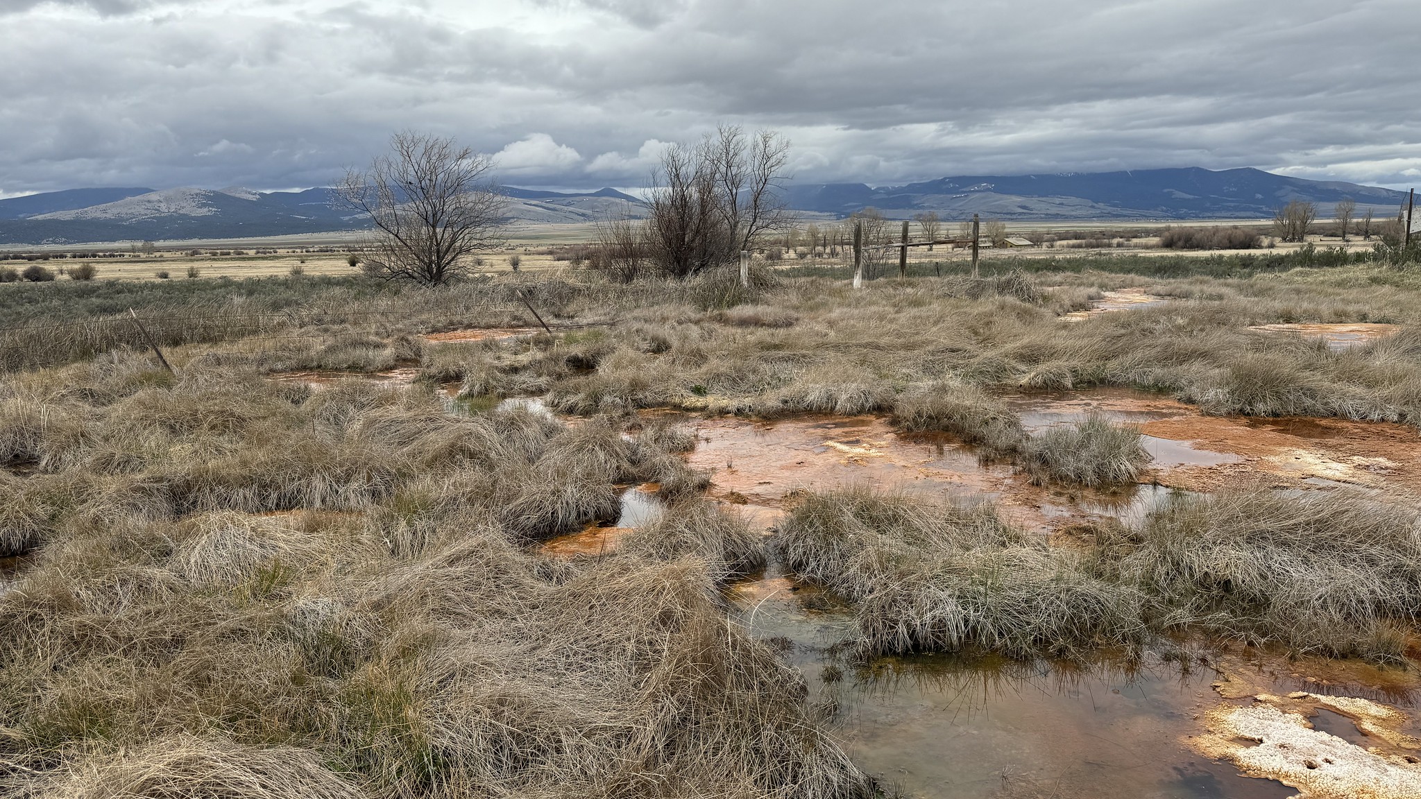 The spring sits at 4,830 feet in the broad Deer Lodge Valley of southwestern Montana, where the Warm Springs Creek drainage meets wide, open ranchland. Annual precipitation reaches 19.6 inches with 58.6 inches of snow. The valley floor is semi-arid grassland flanked by timbered mountain slopes. The Clark Fork River headwaters flow nearby, and the landscape is shaped by historic mining and ranching activity.