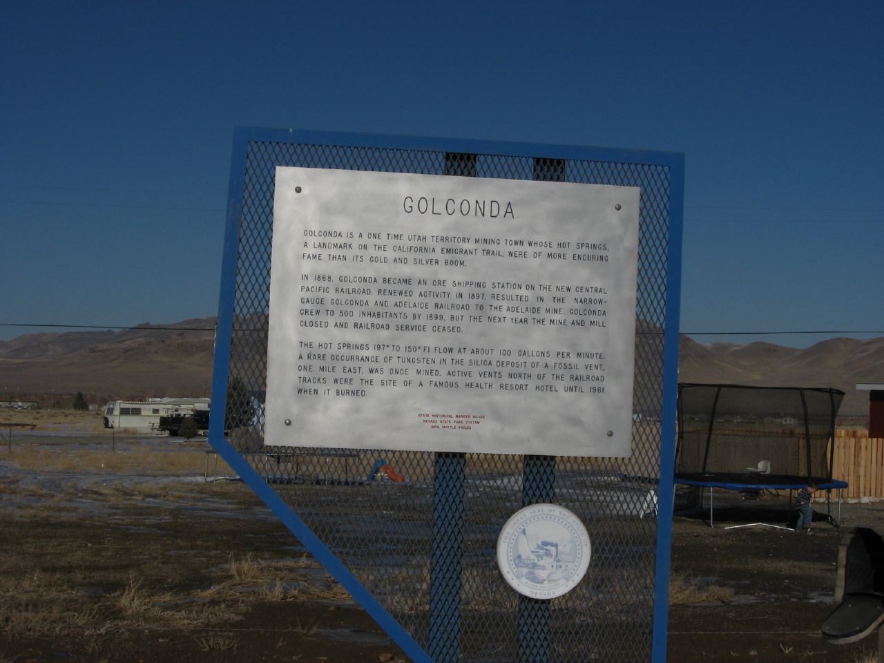 The spring emerges at 4,360 feet in the Humboldt River valley near the historic town of Golconda, where sagebrush flats meet agricultural lands. Annual precipitation reaches 10.3 inches with 23 inches of snow, supporting both native rangeland and irrigated farming. The thermal discharge creates visible mineral deposits and steam plumes, marking the spring's location from considerable distance across the valley floor.