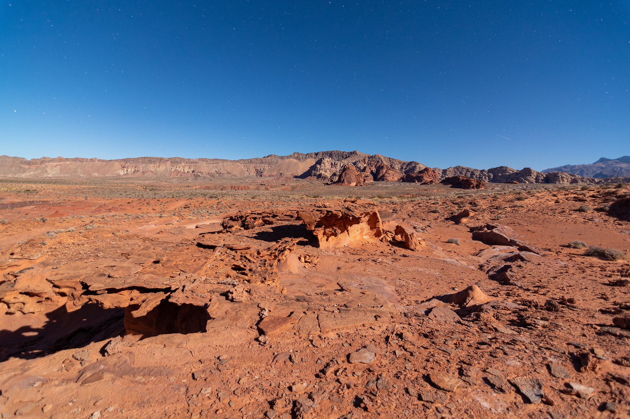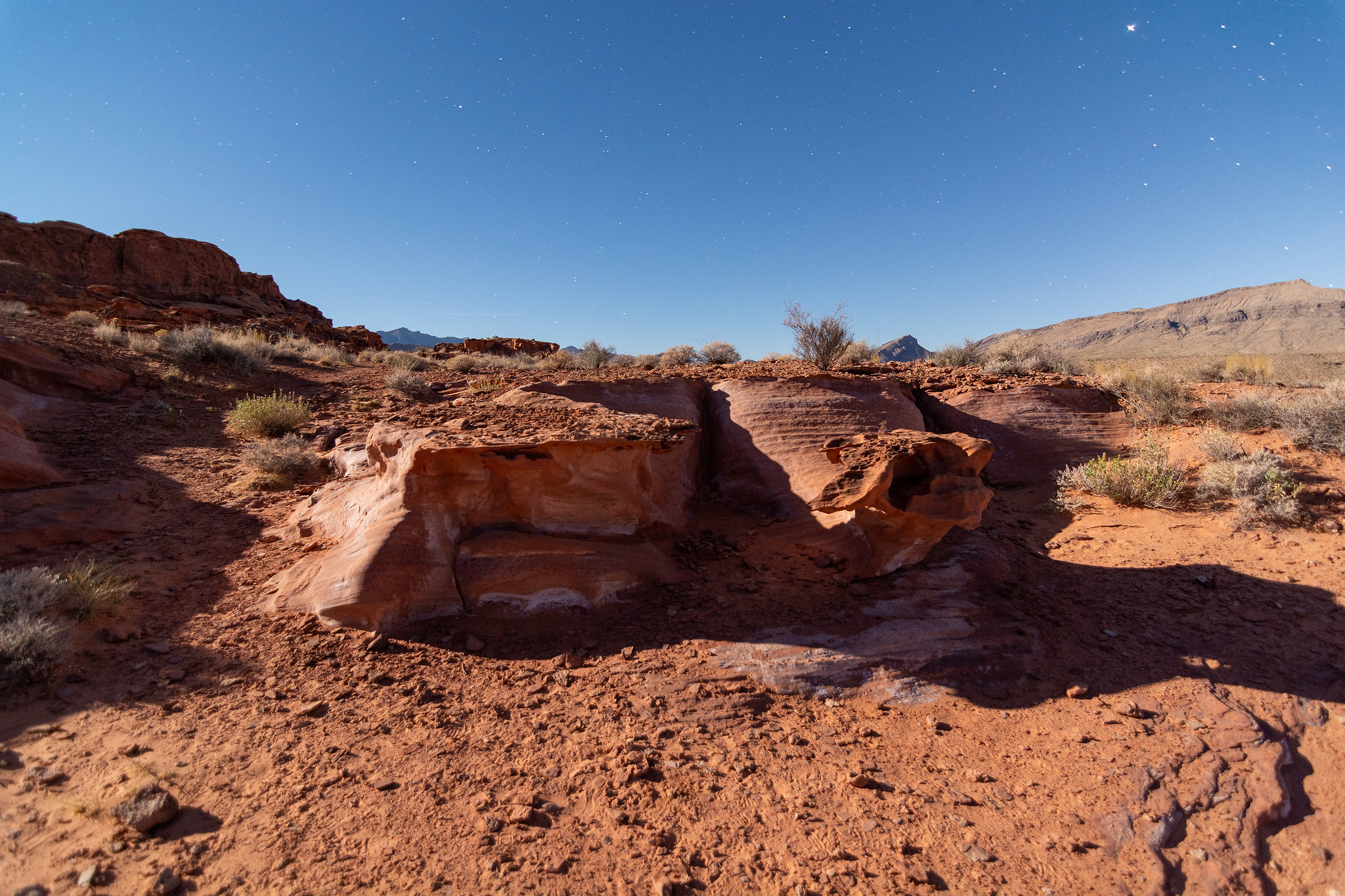 The springs sit in the low desert terrain surrounding Lake Mead's northern reaches near the Overton Arm, where elevations remain below the cooler uplands. Annual precipitation totals only 5.5 inches with negligible snowfall of 0.6 inches, creating extreme desert conditions dominated by creosote bush and sparse vegetation. The surrounding landscape transitions between rocky bajadas and the reservoir's fluctuating shoreline in this driest corner of southern Nevada.