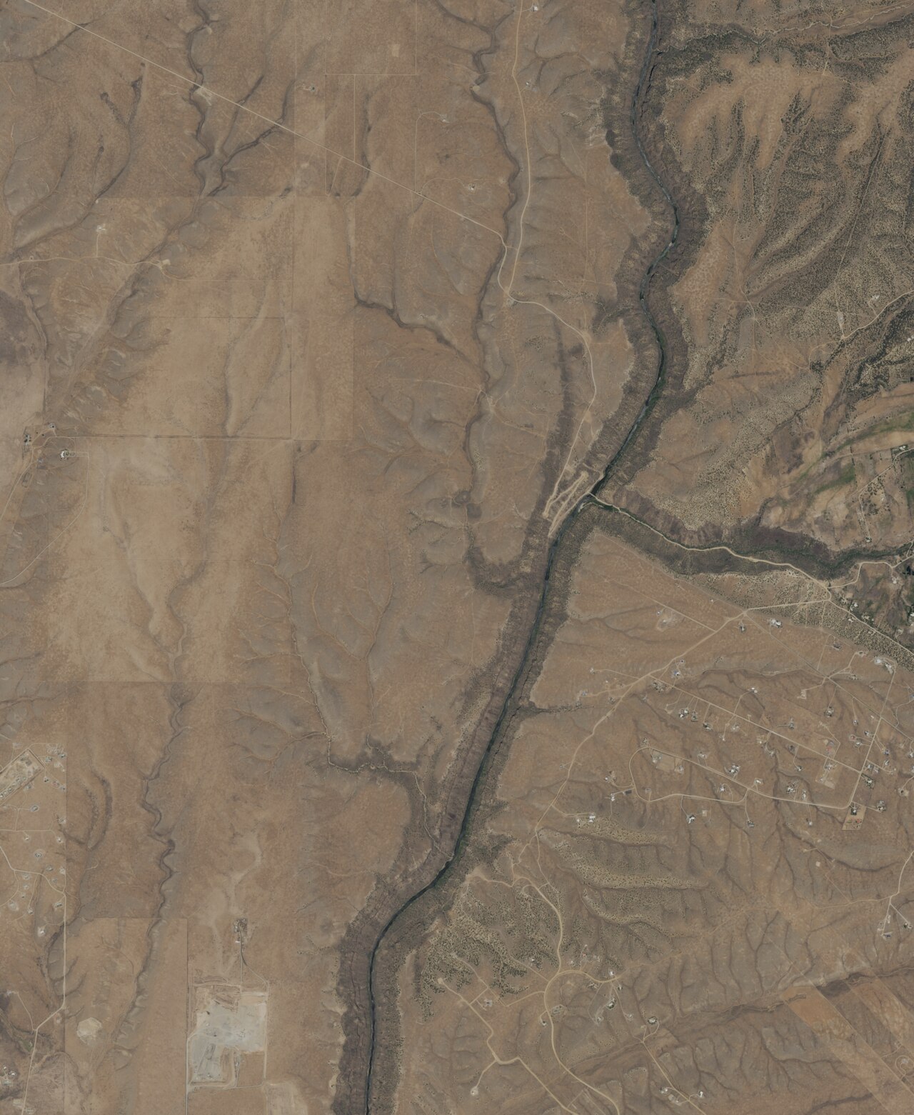 The spring pools along the western rim of the Rio Grande Gorge near Arroyo Hondo, where the river has carved a basalt canyon 800 feet deep into the Taos Plateau volcanic field. Sagebrush and rabbitbrush cover the flat mesa top, dropping abruptly at the gorge edge to reveal layered columnar basalt walls. At 6,680 feet, the area receives 13.1 inches of rain and 34.1 inches of snow annually, creating distinct seasons. The Sangre de Cristo Mountains rise to over 13,000 feet to the east, framing the horizon.