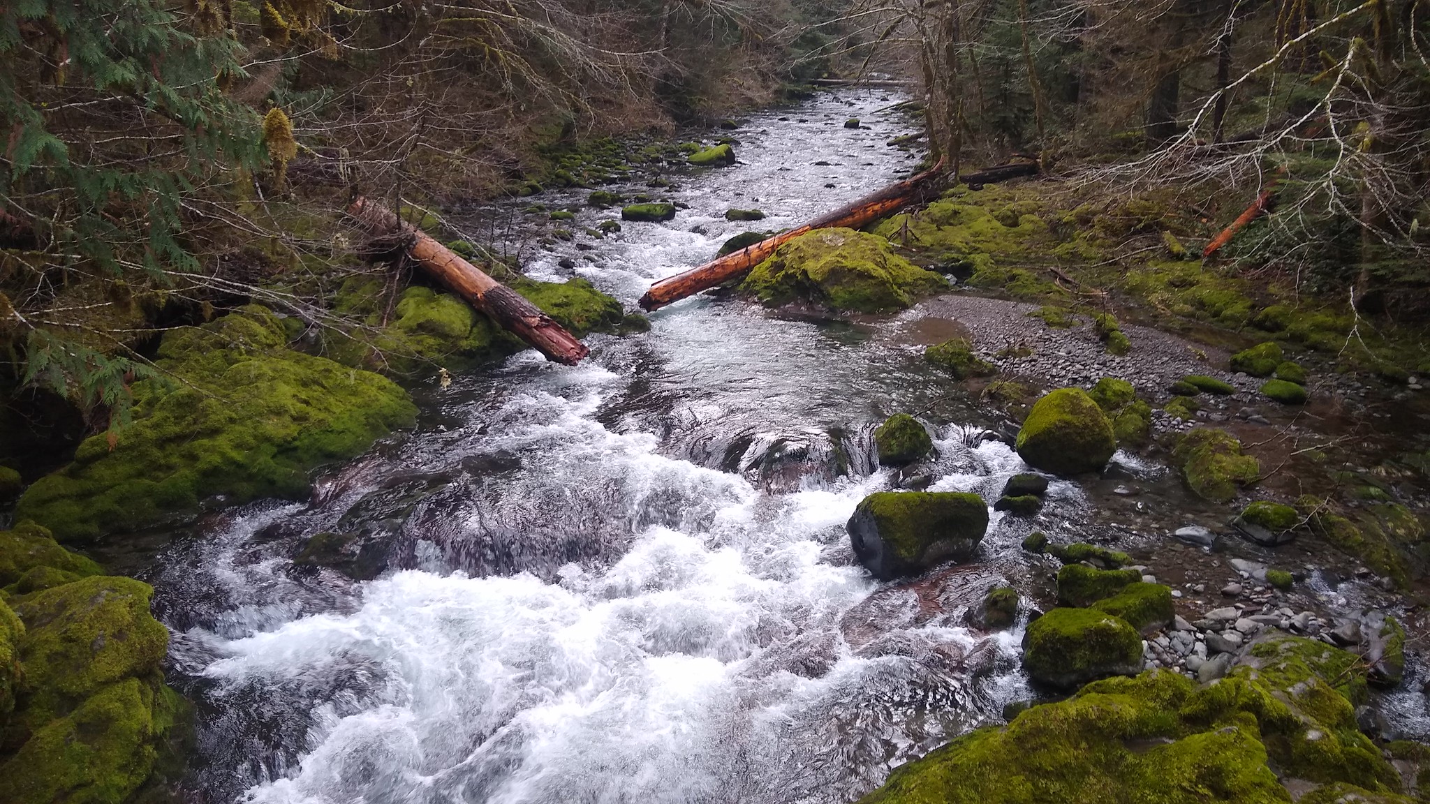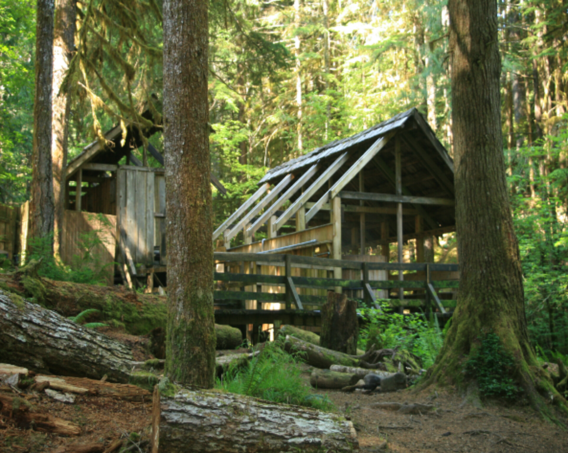 The springs emerge in densely forested terrain along the Hot Springs Fork of the Collawash River, a tributary to the Wild and Scenic Clackamas River system, where Linn County's mountain landscape receives 78 inches of annual precipitation including 163.8 inches of snow. Douglas-fir, western hemlock, and western redcedar dominate the forest canopy, with understory vegetation thriving in the perpetually moist conditions. Kingfisher Campground occupies riverside terrain 7.8 kilometers distant along the Collawash River.
