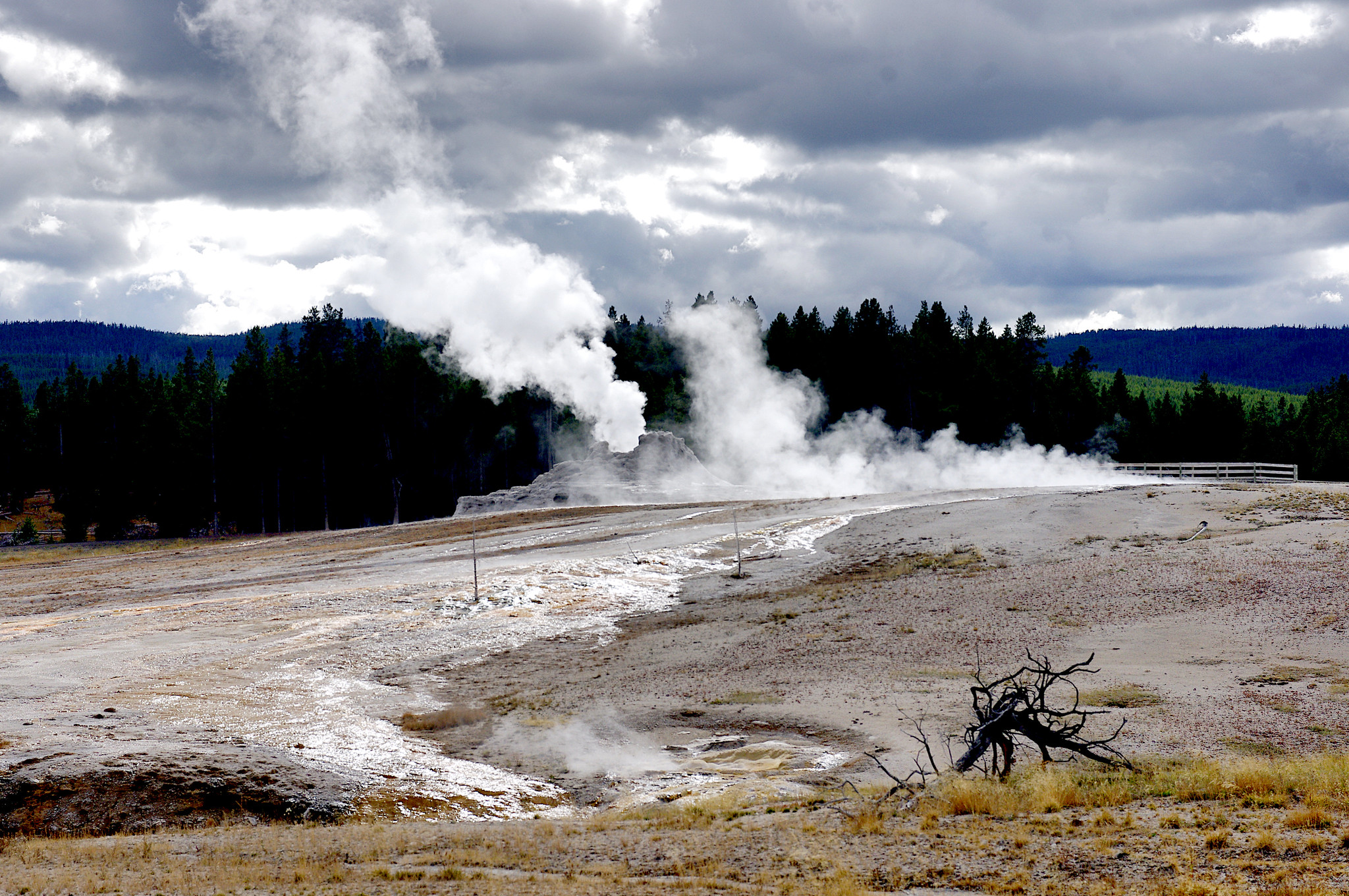 Visit from June through September for clearest access, though May and October are possible if weather permits. Park entrance fees apply. The 466-meter walk from parking follows thermal terrain where staying on trails is mandatory—ground instability and extreme temperatures pose serious hazards. The 205-degree water causes instant severe burns on contact. Big Springs Group Area in Idaho lies 34 kilometers away with reservable camping. Bring layers for variable mountain weather and bear spray for safety. Combine with Fountain Paint Pot and other Lower Geyser Basin features.